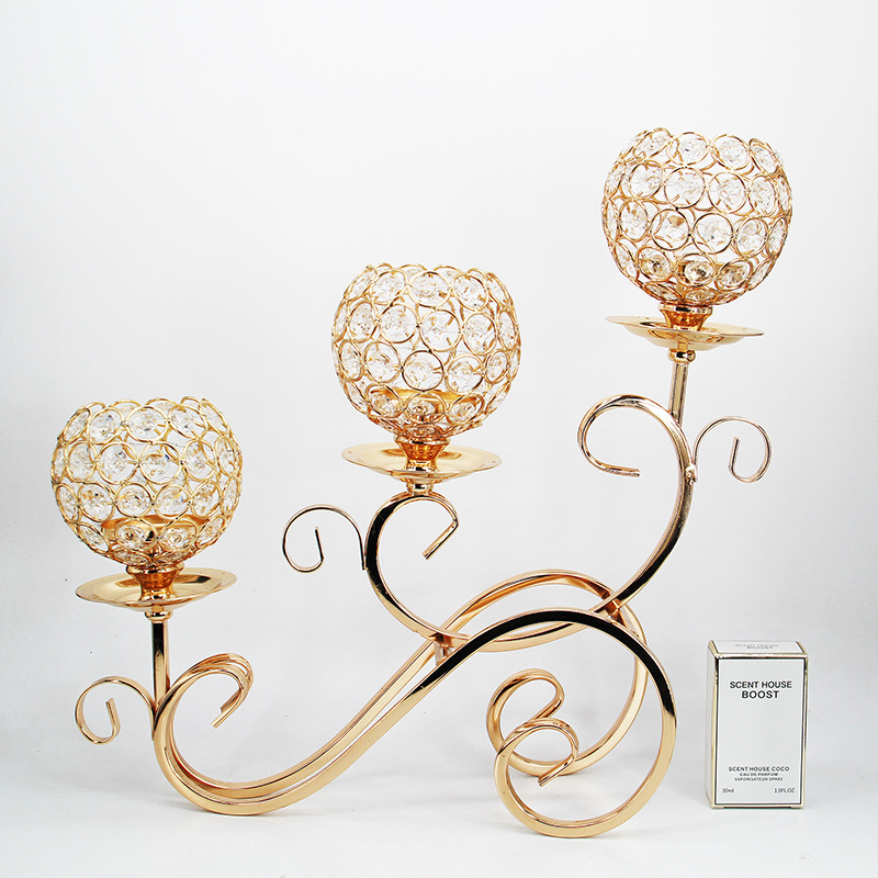 Wedding props party decoration selling European retro home wedding candle holder wedding props three crystal candle holder decorative ornaments