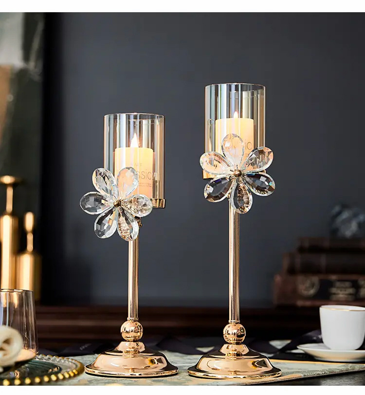 Wedding props party decoration European Light Luxury Crystal Petal Glass Candlestick Romantic Candlelight Dinner Home Table Decoration Decorations Home Retro