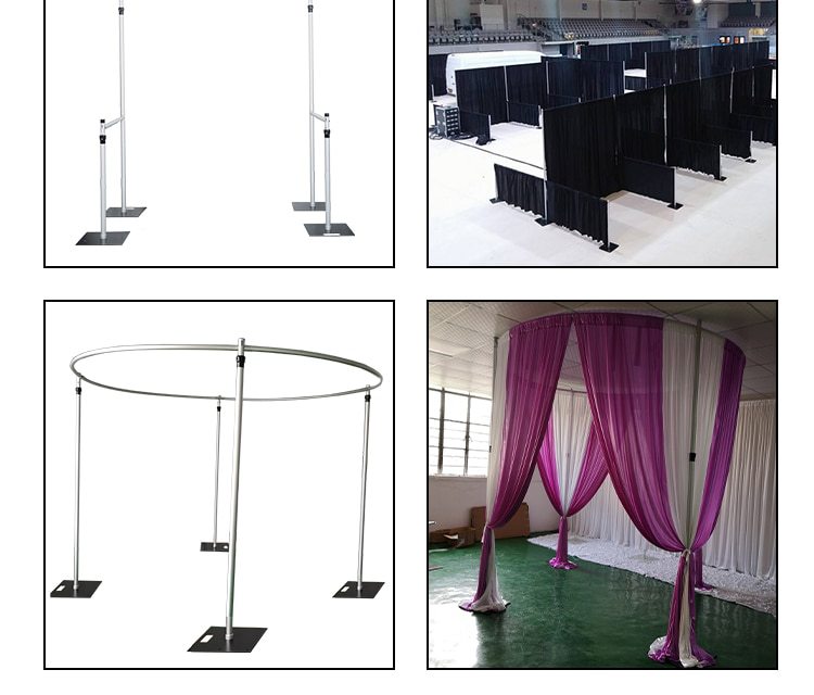 Our curtain frames are often suitable for commercial exhibition booths, tents, wedding flower walls, large banquet halls, and stage backgrounds. Our curtain frames can cover monotonous and unattractive walls or windows, creating a perfect space.