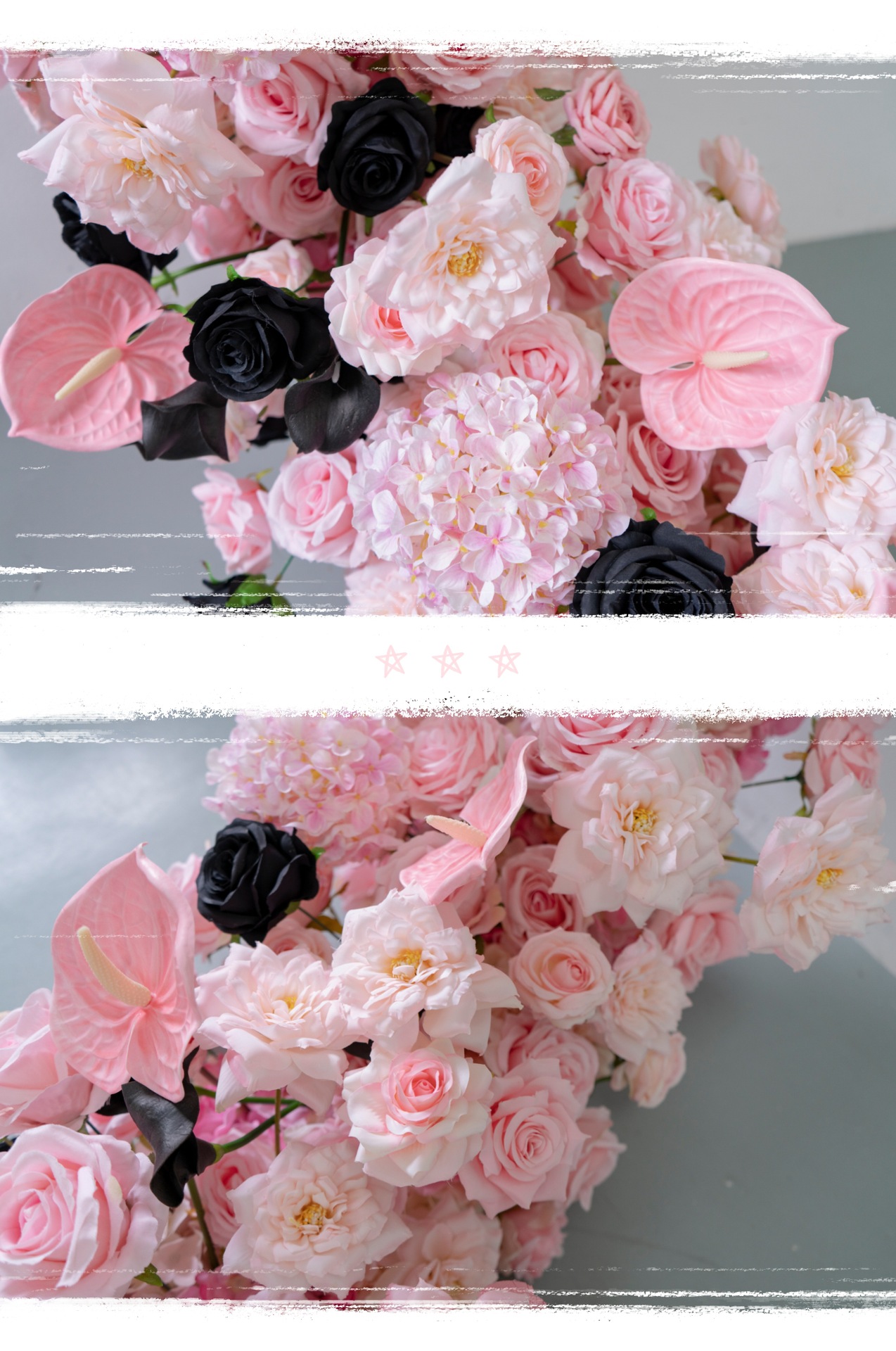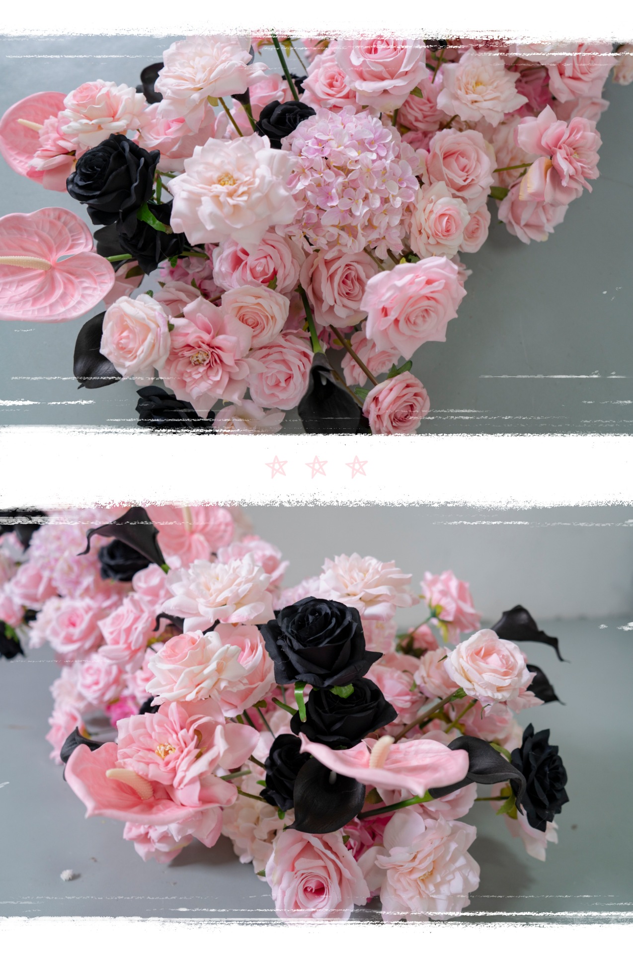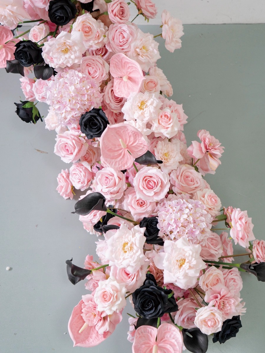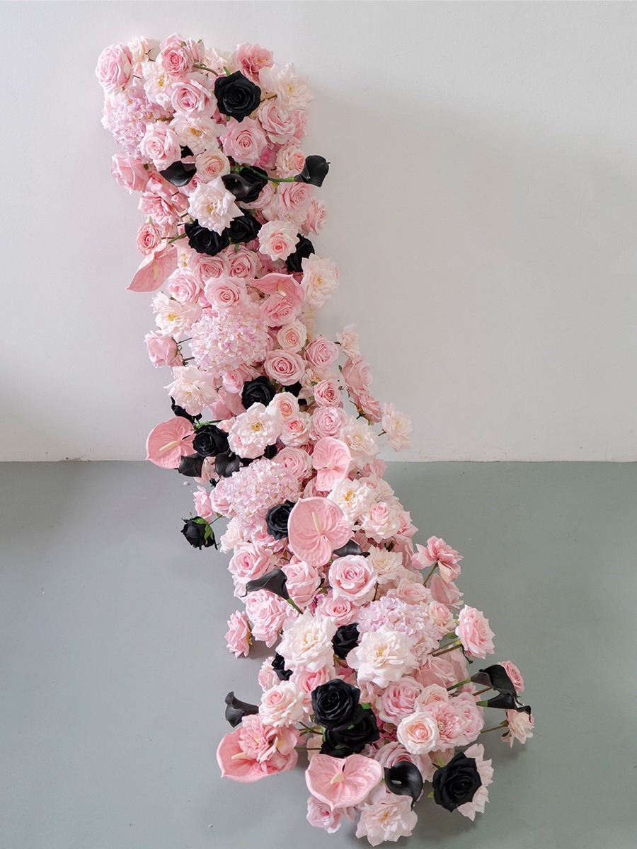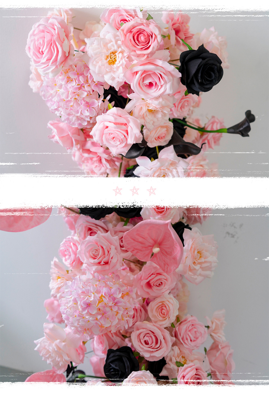 Wedding props decorations long table flowers flowers black pink artificial flowers artificial flowers table decoration finished flowers.