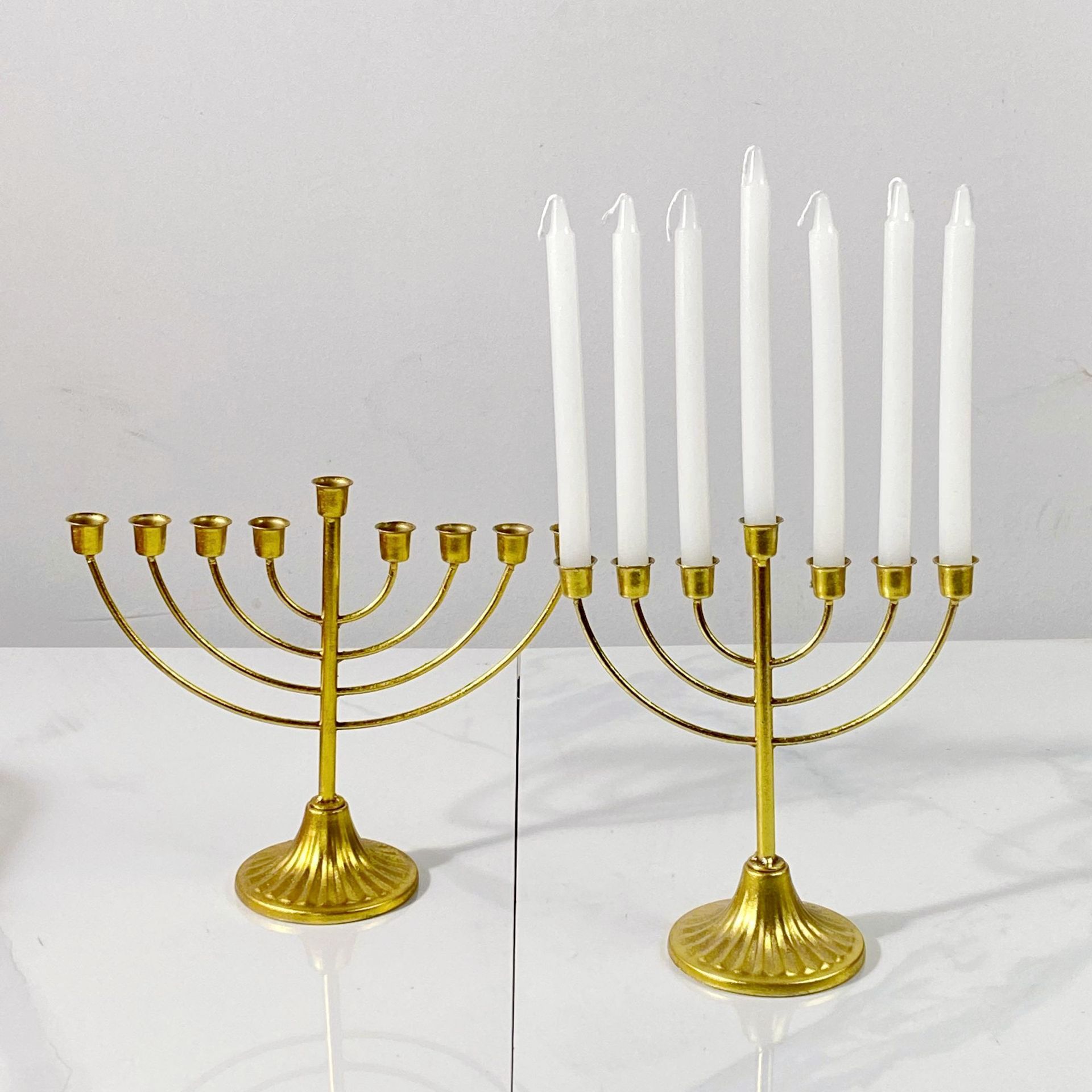 Golden Lantern Hanukkah 9-head candlestick Golden retro iron multi-head candlestick prayer Candlestick Cup