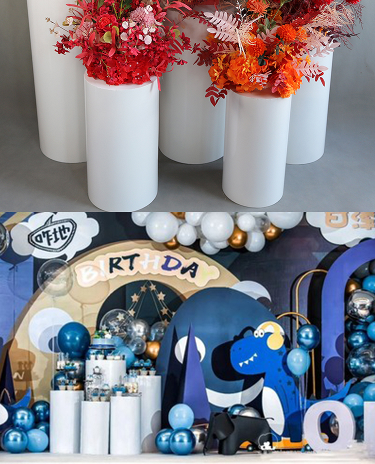 Wedding props party decoration New wedding props white wrought iron cylindrical dessert table set of five cake stands in the welcome area ceremony pavilion table.