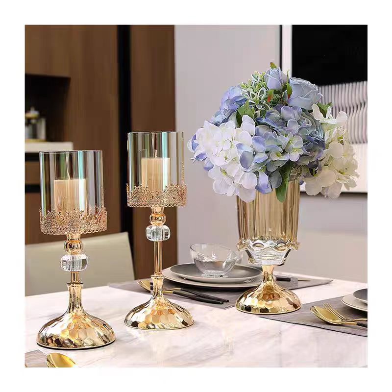 Wedding props party decoration Simple and luxurious gold metal glass candle holder romantic candlelight dinner home table decoration candle holder jewelry